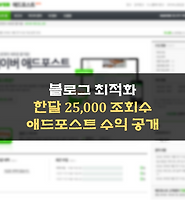 | [블로그 최적화] 네이버 블로그 수익내기. 한달 25,000조회수 애드포스트 후기, 광고 수익 공개 (1) | 2016.10.17 |